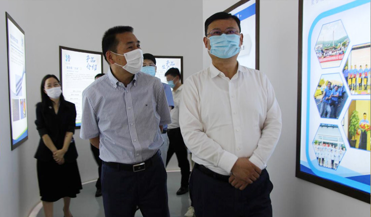 金書記一行參觀企業(yè)展廳中心時,詳細了解我司技術創(chuàng)新、產(chǎn)品應用、市場推廣和產(chǎn)業(yè)鏈動態(tài)等情況,仔細詢問企業(yè)當前防疫措施和今后發(fā)展規(guī)劃等問題。